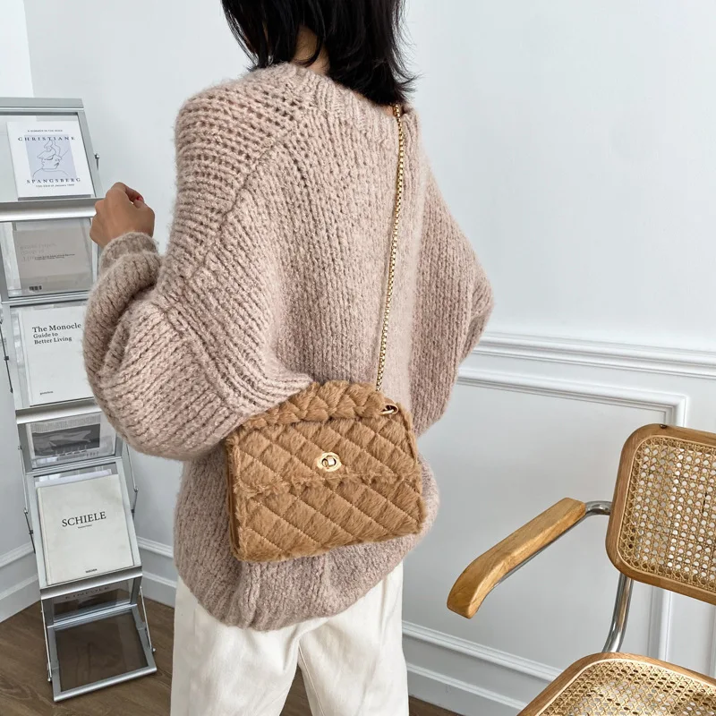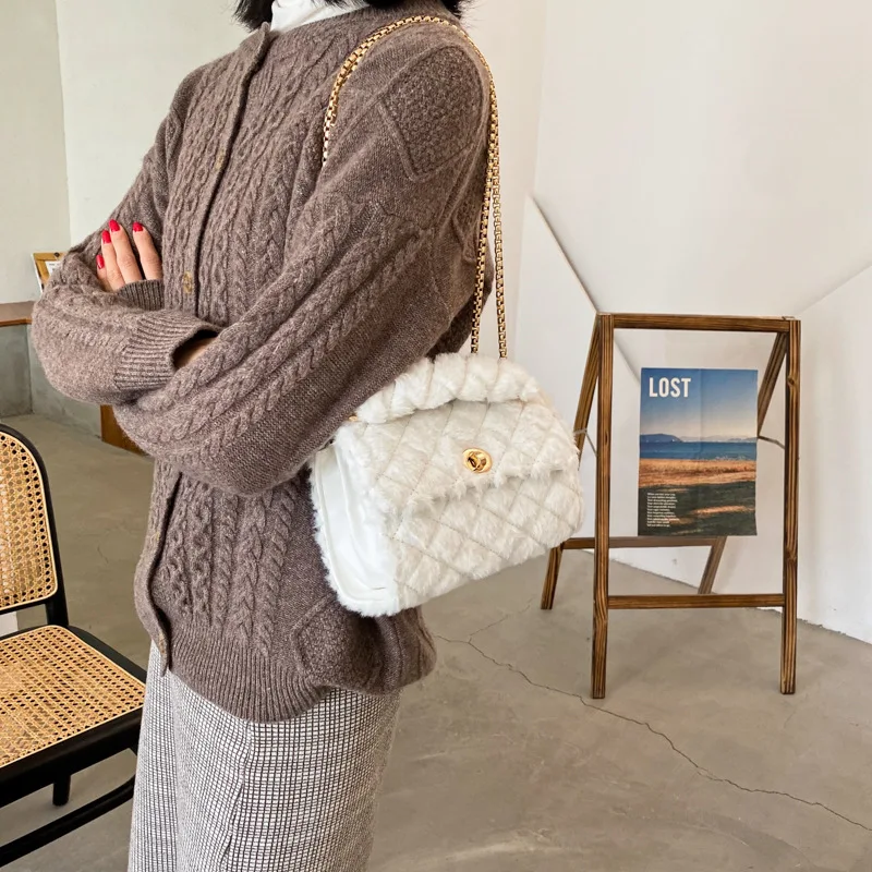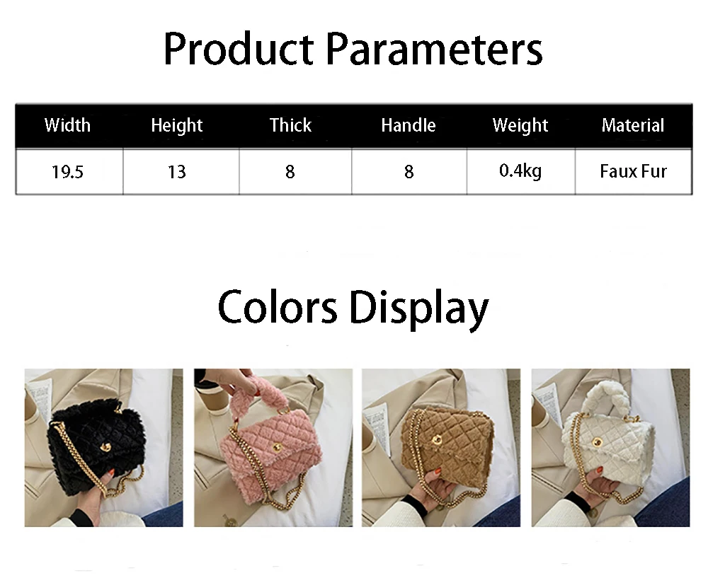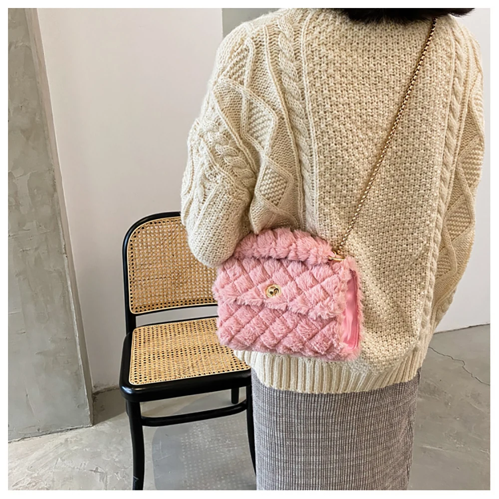 Зимняя теплая женская сумка на плечо из искусственного меха, новые роскошные женские сумки и кошельки с цепочками, сумки через плечо с верхней ручкой для женщин