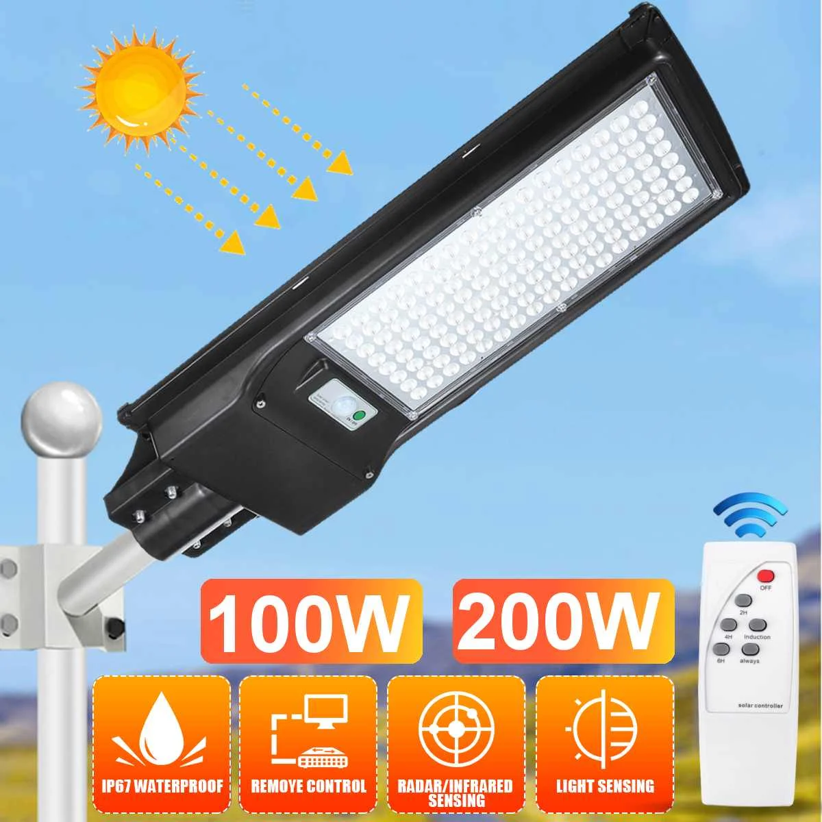 AUGIENB 100 Вт/200 ВтСолнечный уличный фонарь 88/136LEDУличные солнечные фонари IP67Водонепроницаемый Солнечный прожектор с датчиком движения от сумерек до рассвета светильник для двора, сада, улицы, баскетбольной площадки, желоба