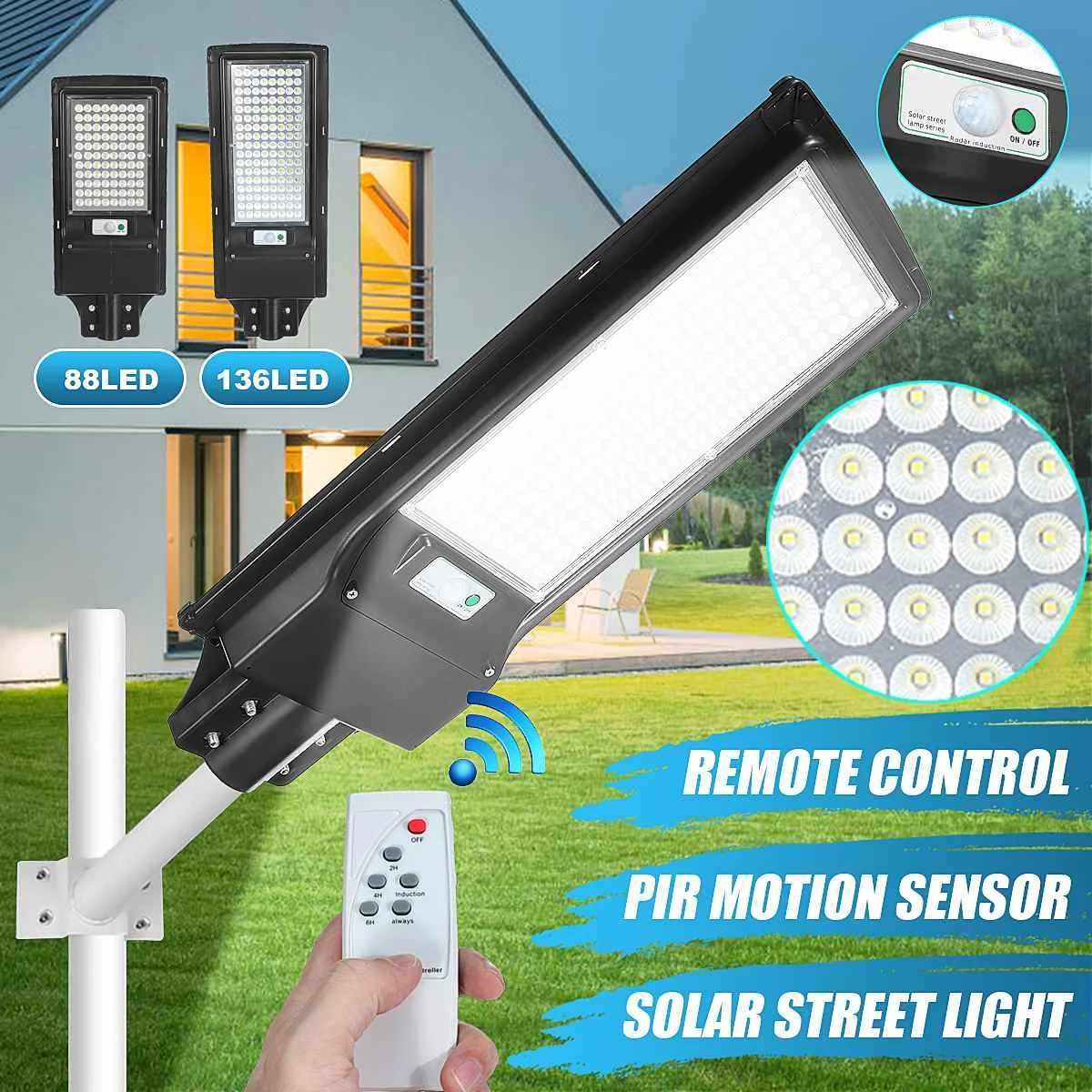 【Обновленная солнечная панель 】88/136Ярсветодиодный,ПOwerful2400/4800 лUmens выводит солнечные лампы.16000/24000mAH LВзрывозащищенный железо-фосфатный аккумулятор ithium обеспечивает длительное освещение и долговечность, обеспечивает хорошее освещение для вашего гаража, сада и прохода.