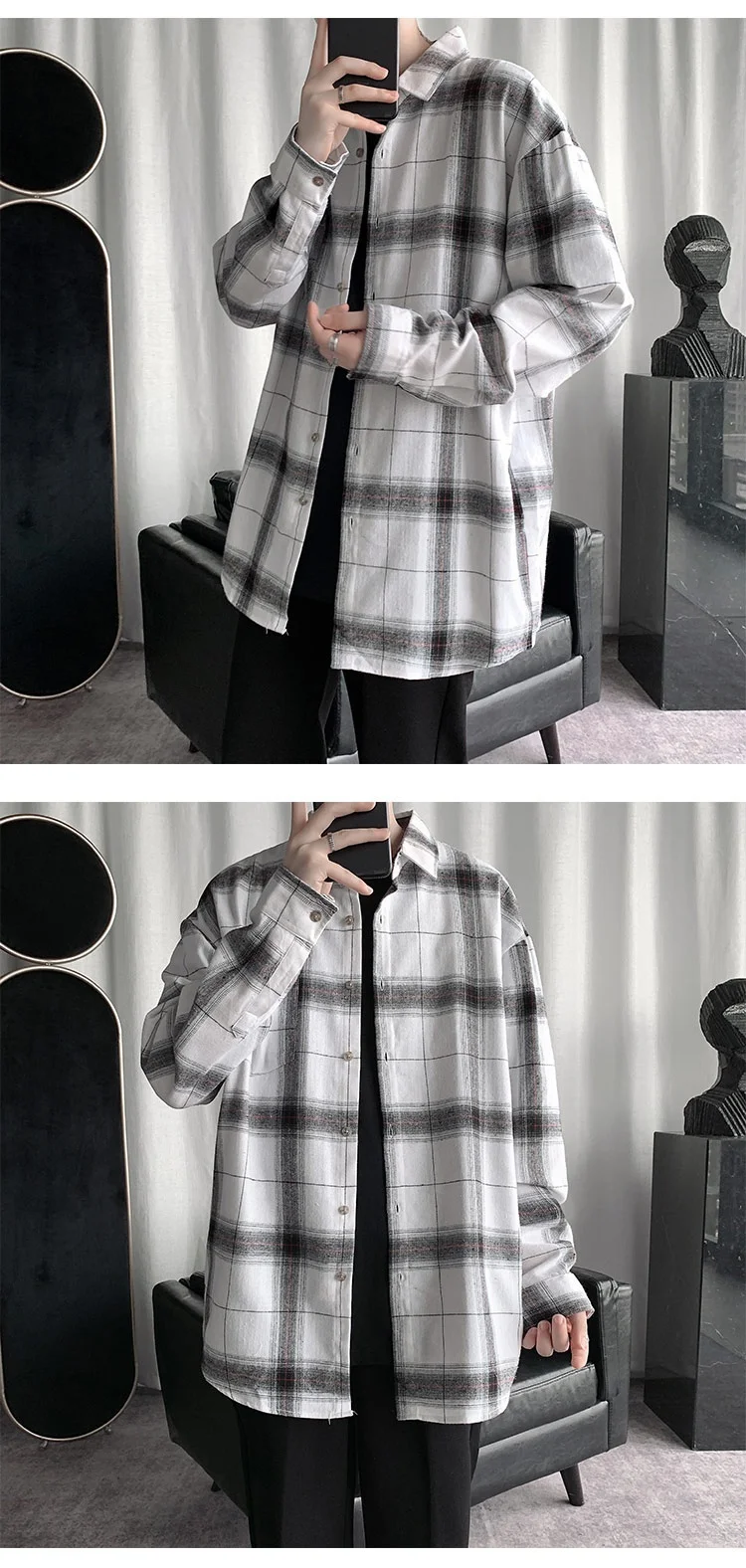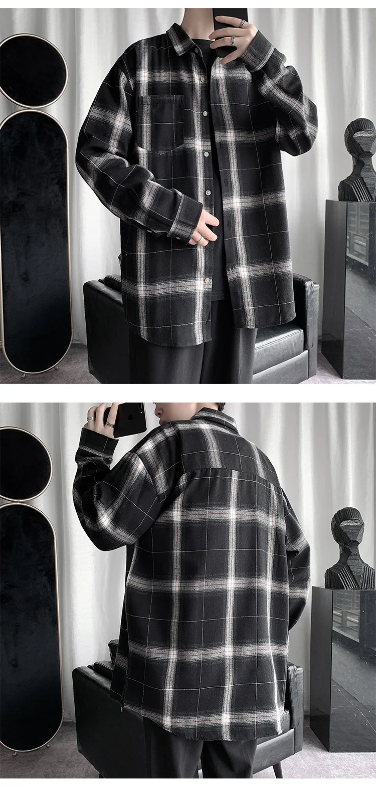 Рубашка RUIHUO мужская в клетку, модная рубашка в клетку с длинным рукавом, мужская повседневная приталенная рубашка в стиле Харадзюку, 2022
