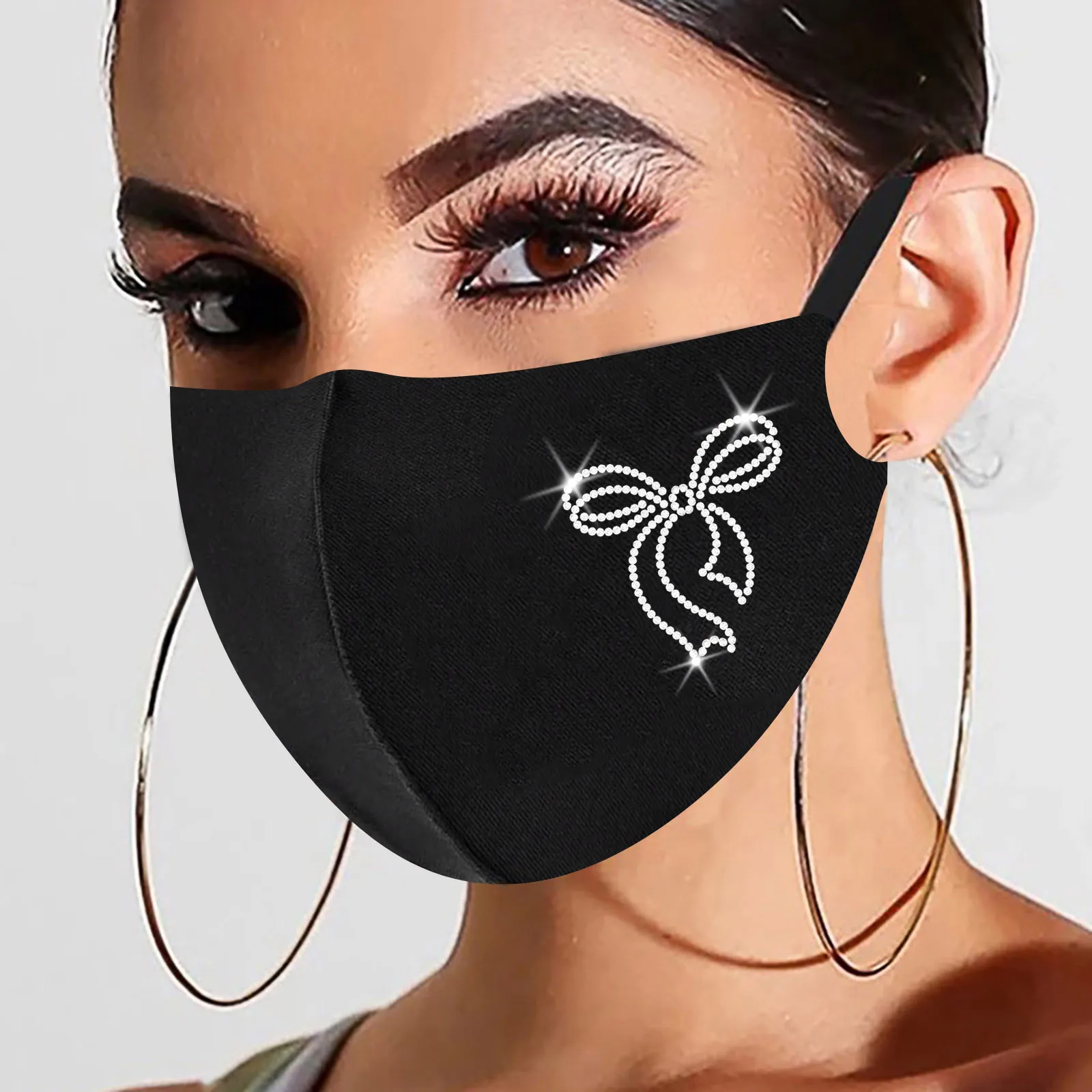 Модная блестящая маска с принтом для взрослых, дышащая маска для лица против пыли, маска для лица с блестящими бриллиантами из вискозы, многоразовая маска для рта