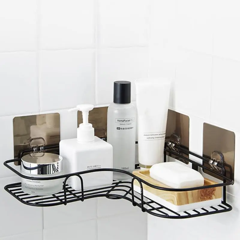 Угловая душевая полка с душевой рамой, душевая полка, полка для хранения шампуня из кованого железа, держатель с присоской, аксессуары для ванной комнаты