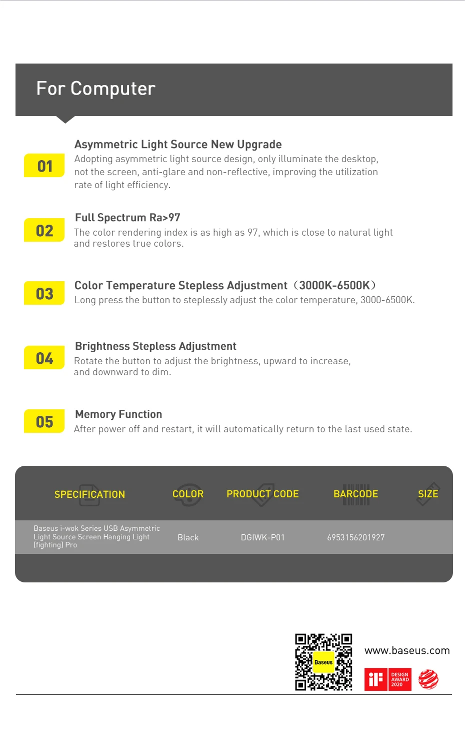 Асимметричный подвесной светильник Baseus с USB-разъемом, светсветильник для компьютера, Настольная Светодиодная лампа для чтения