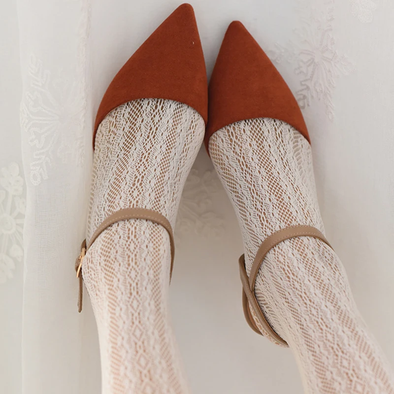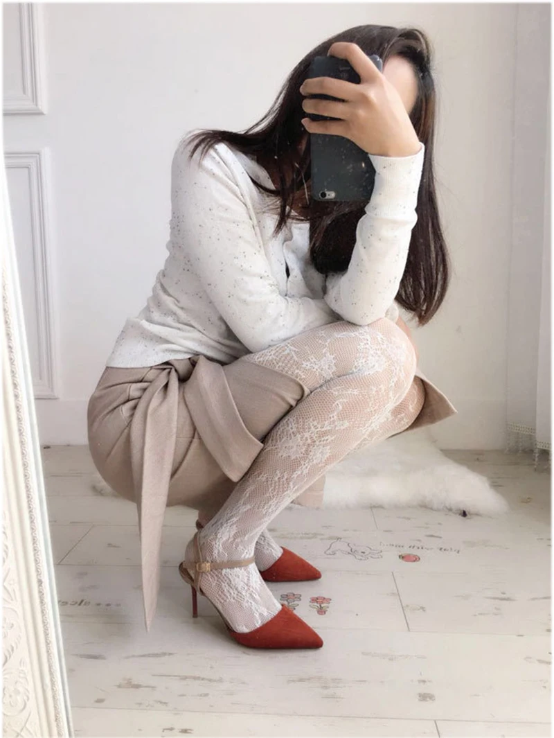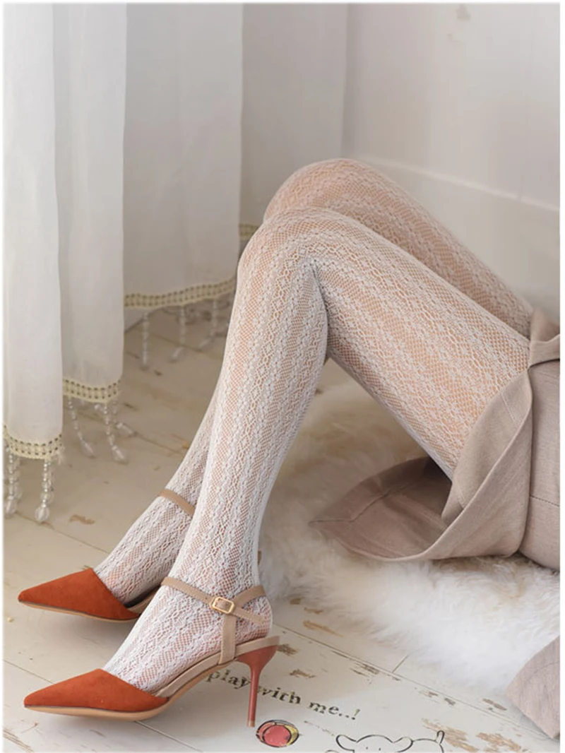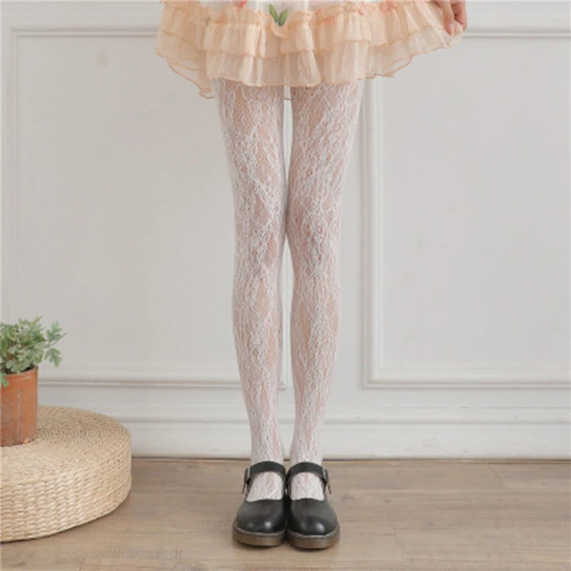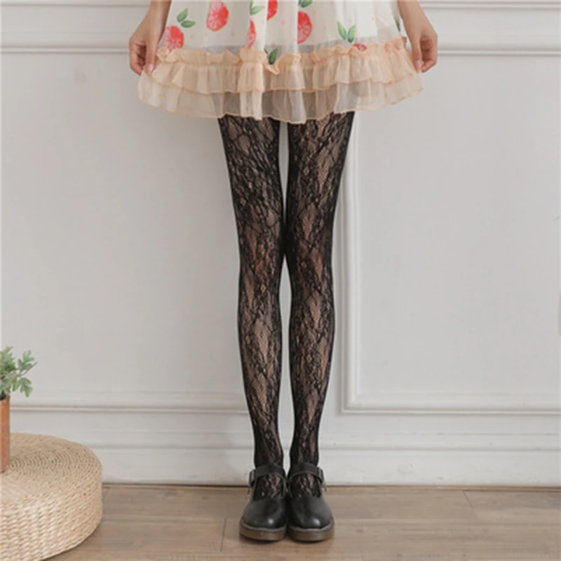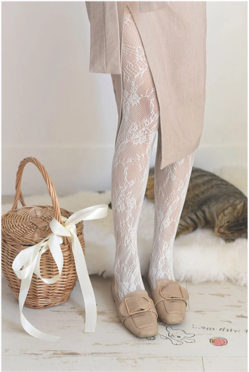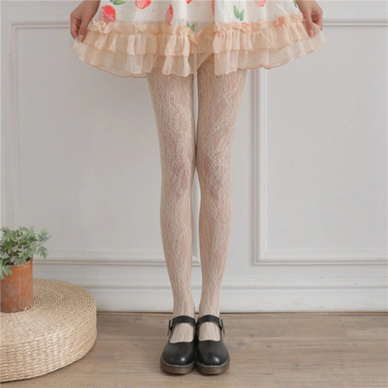 Женские колготки в японском стиле, черные кружевные ажурные колготки в стиле Лолиты для девушек, белые шелковые чулки в ретро-стиле с цветочной лозой