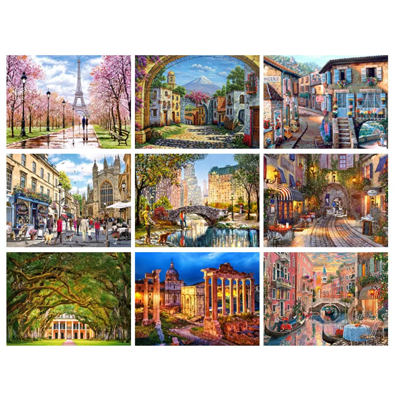 Алмазная 5D картина, квадратная круглая вышивка, экологичные поделки, полная вышивка Город, натуральный цветок, домашний декор