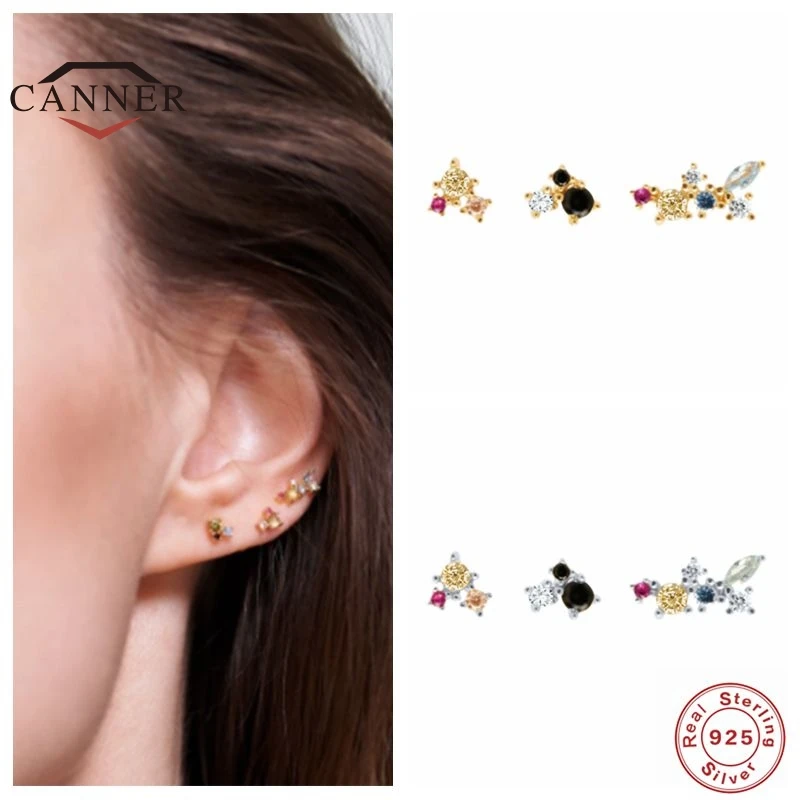 Автоклав 3 шт. реальные 925 стерлингового серебра простой Цвет смешанные, серьги со шпилькой, для женщин, пирсинг серьга серьги ювелирные изделия Pendientes