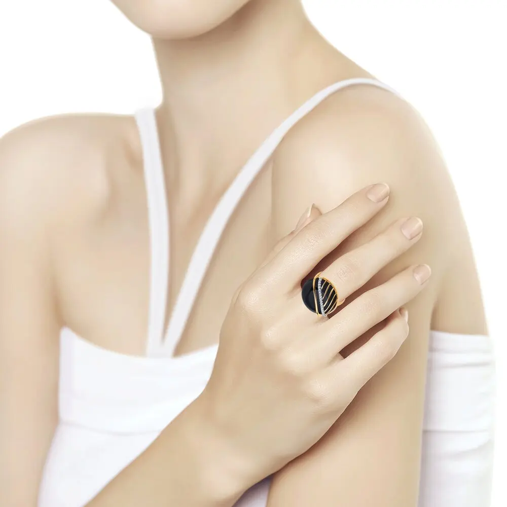 Кольцо SOKOLOV из золочёного серебра с агатом и фианитами