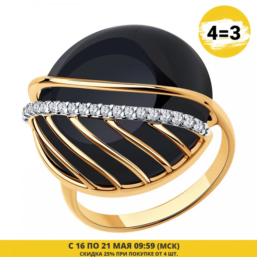 Кольцо SOKOLOV из золочёного серебра с агатом и фианитами, Серебро, 925, Женское, Оригинальная продукция