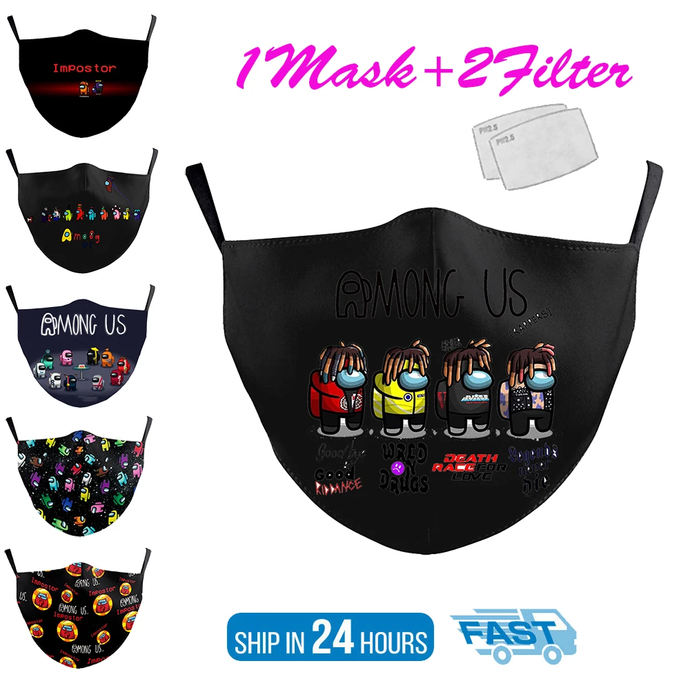 Маска Тканевая моющаяся с принтом Игры среди нас, дышащая Ветрозащи...