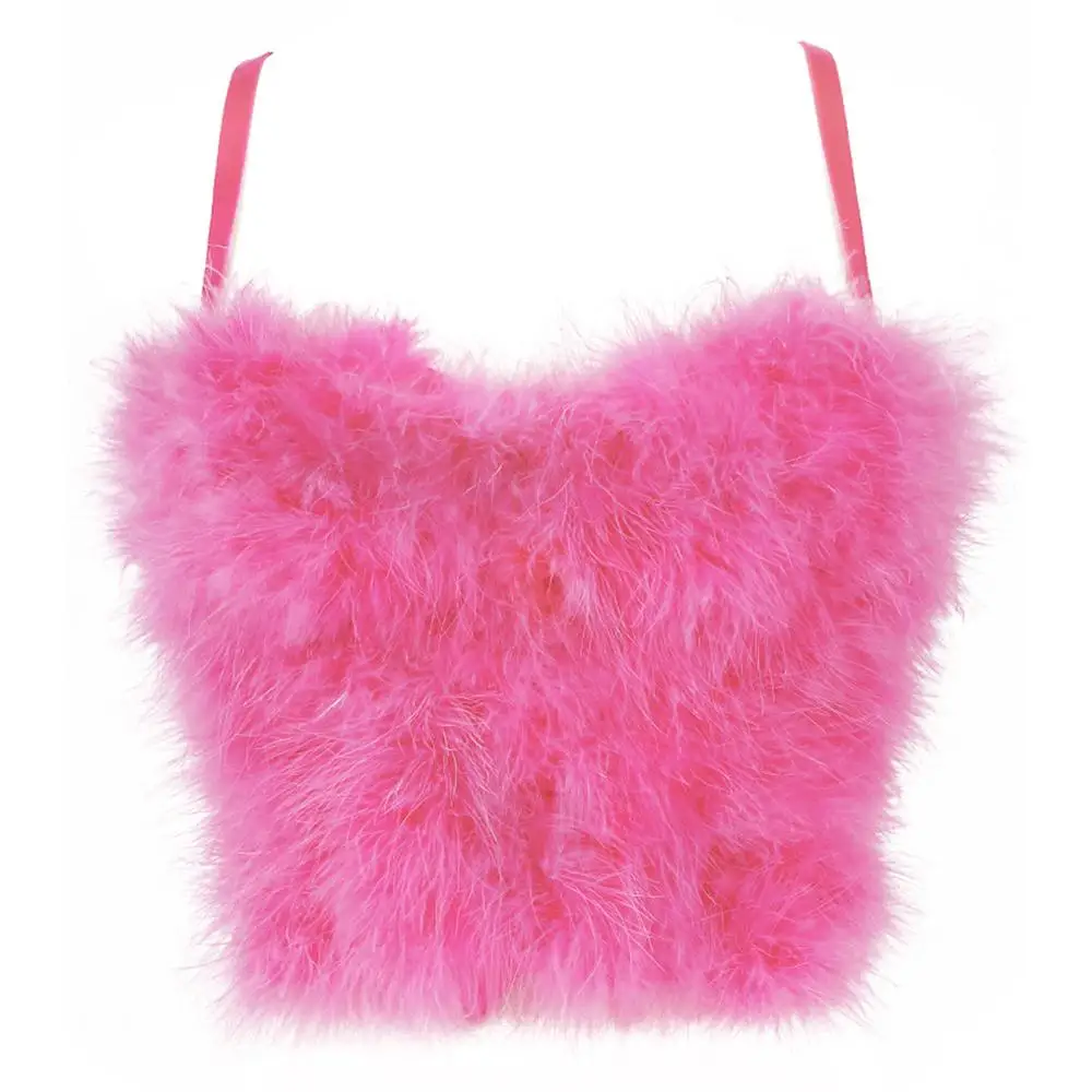 Укороченный топ из искусственного меха, однотонный розовый, для выступлений, для осени, корсетный Топ, сексуальный топ, Женский бюстье с пуш-ап