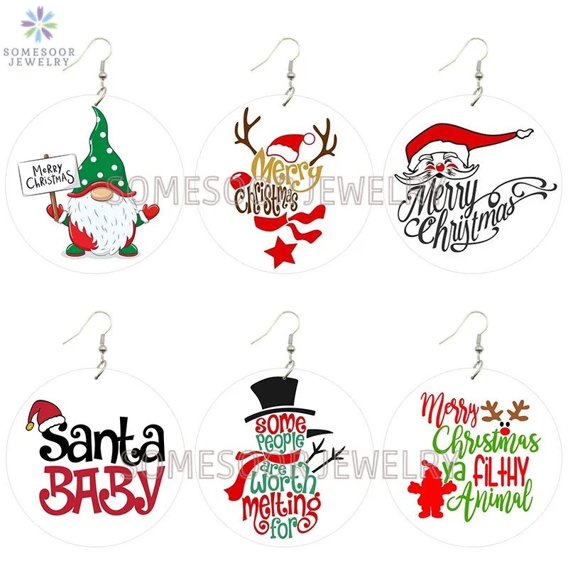 SOMESOOR Веселые серьги-капли, милые детские серьги-подвески в виде Санта-Клауса, животных, лося, снеговика, подарки для женщин и девочек