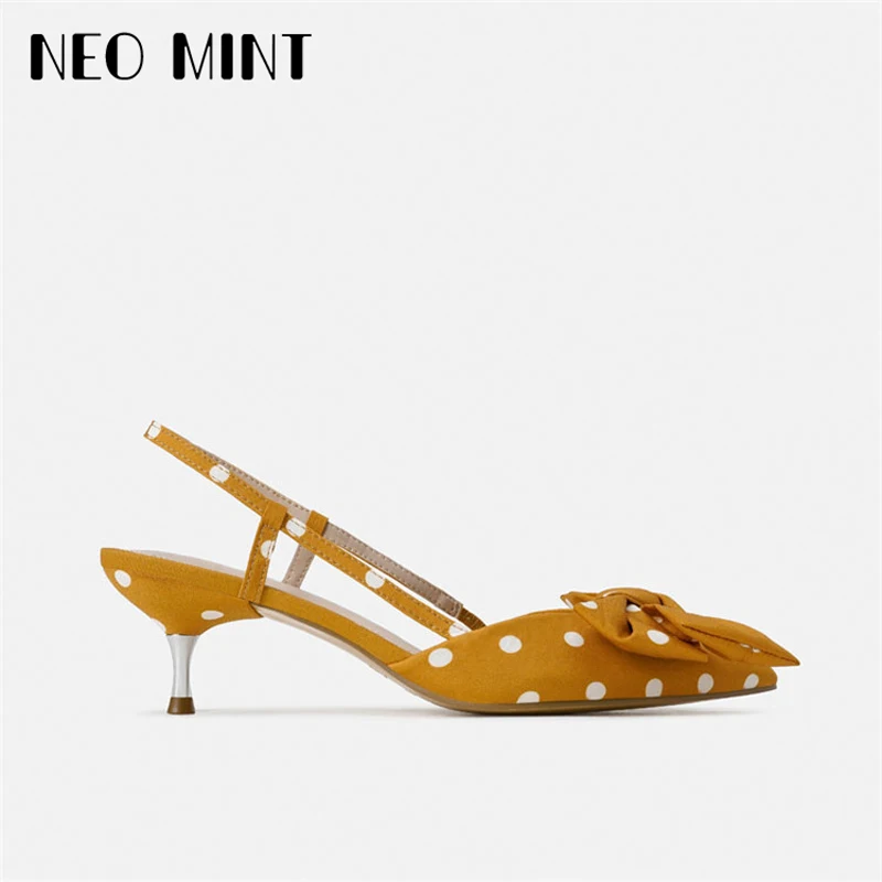 Новые летние женские босоножки в горошек на высоком каблуке женские туфли-лодочки без застежки на каблуке-рюмочке модные пикантные женские шлепанцы с бантом