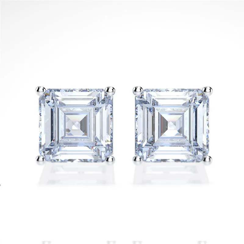 Серьги-гвоздики Asscher с бриллиантами на 100% карата, ювелирные изделия из серебра 925 пробы для помолвки и свадьбы
