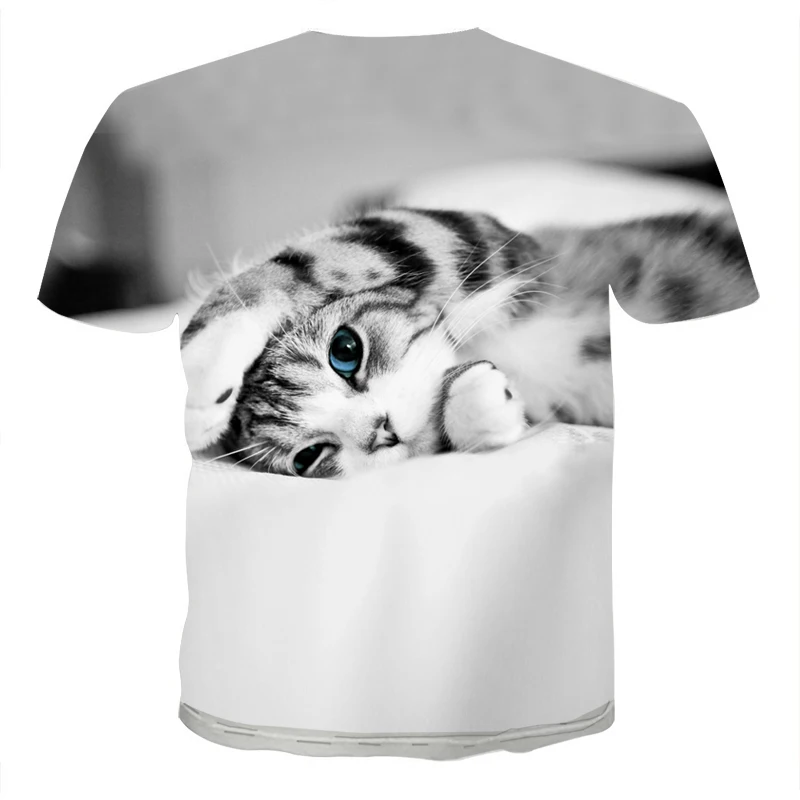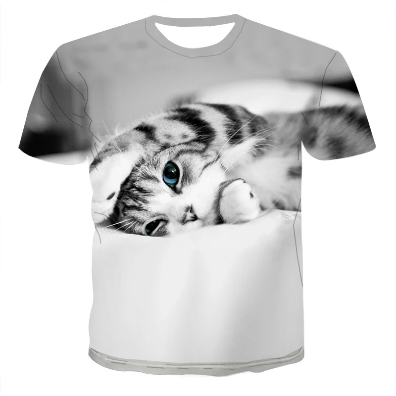 Футболки для мальчиков и девочек, летние, с милыми рукавами, с 3D-принтом животных, кошек