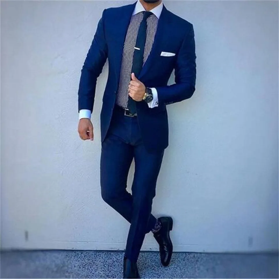Новый мужской костюм Smolking Noivo Terno, приталенные вечерние костюмы Easculino для мужчин, Синие Свадебные выпускные (пиджак + брюки), мужские блестящие костюмы на заказ