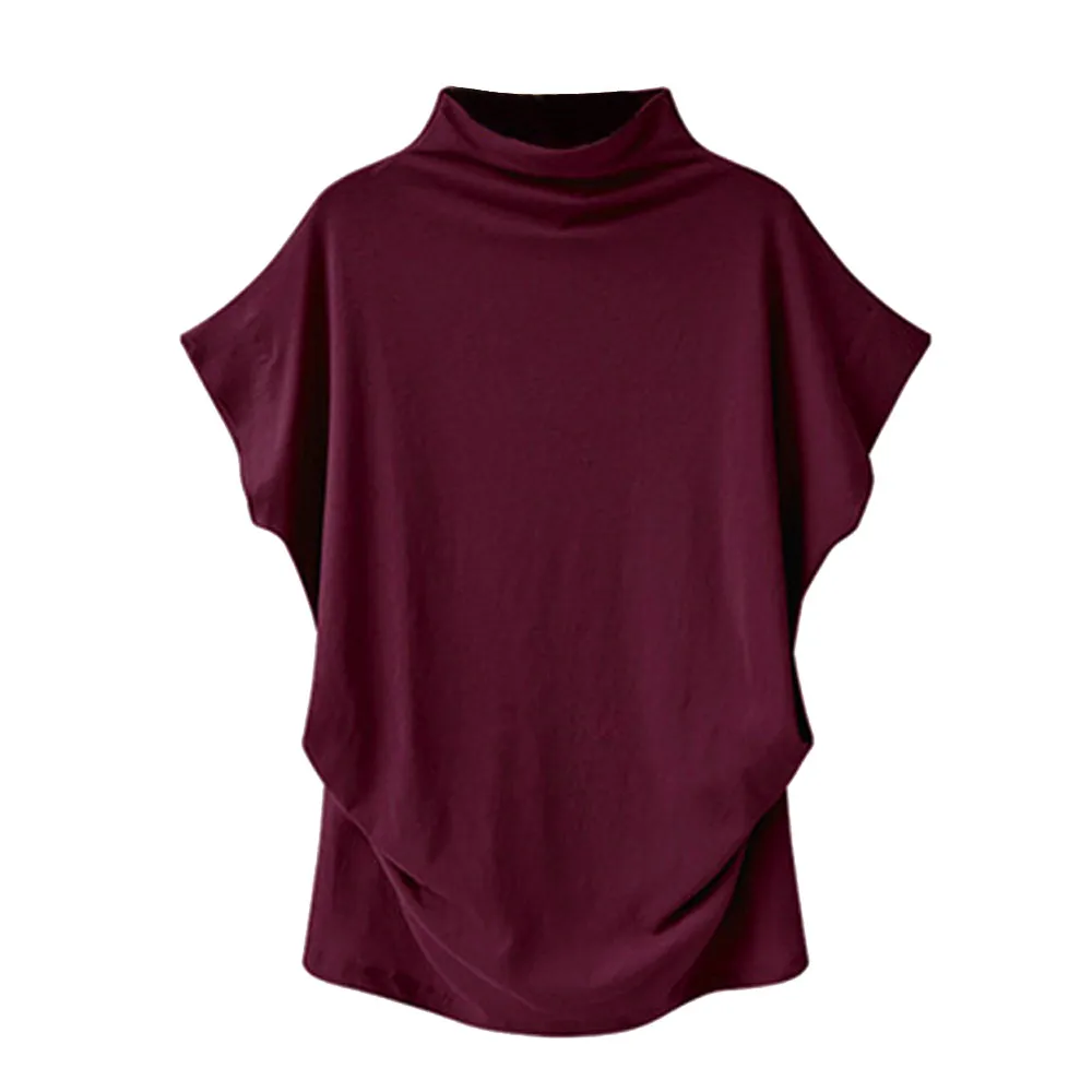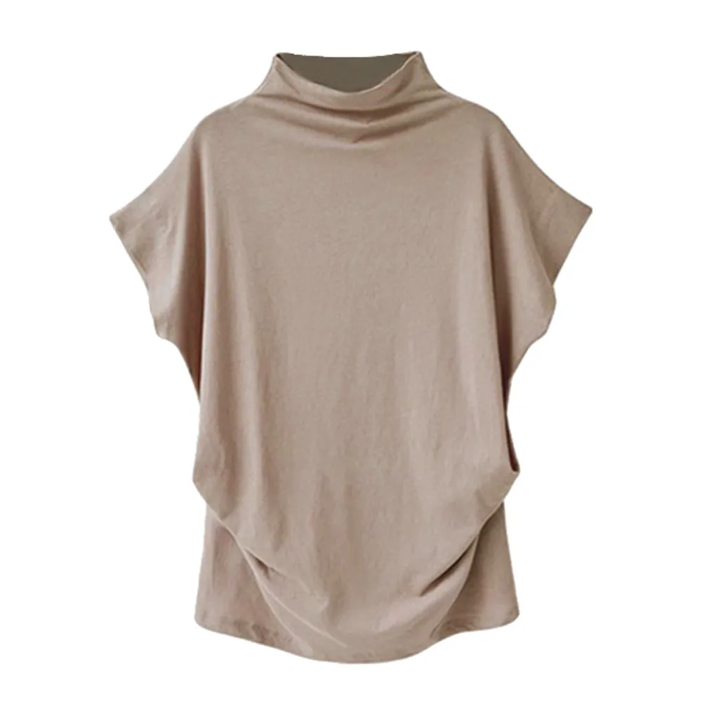 blusasWomen Casual Turtleneck Short Batwing Sleeve Blouse