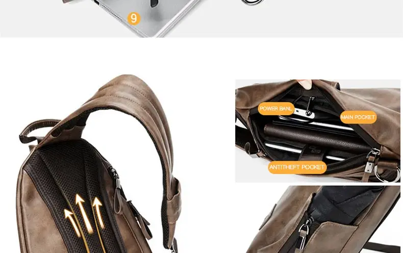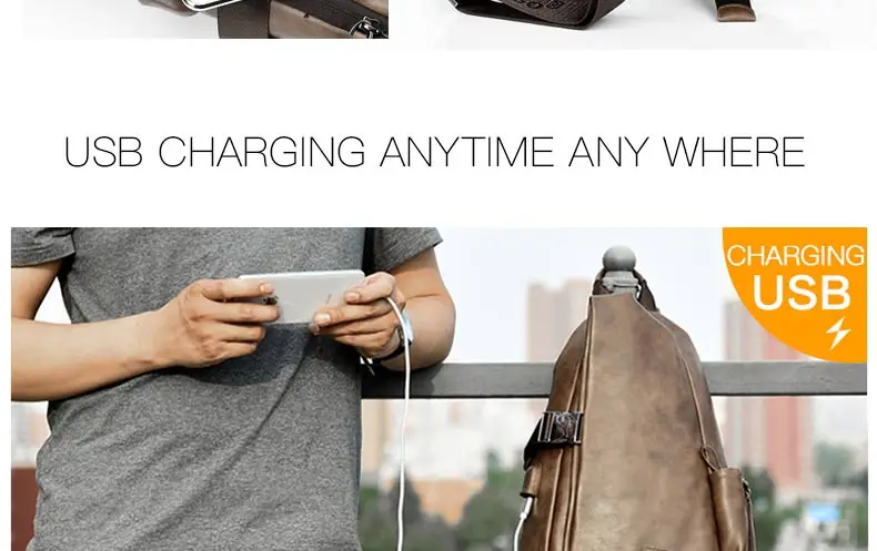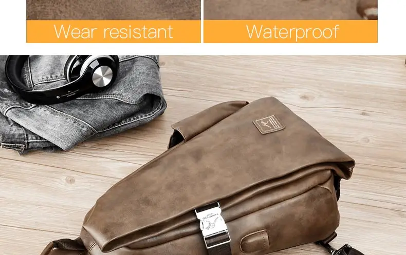 Сумка-мессенджер JackKevin Мужская, кожаная, с USB-зарядкой