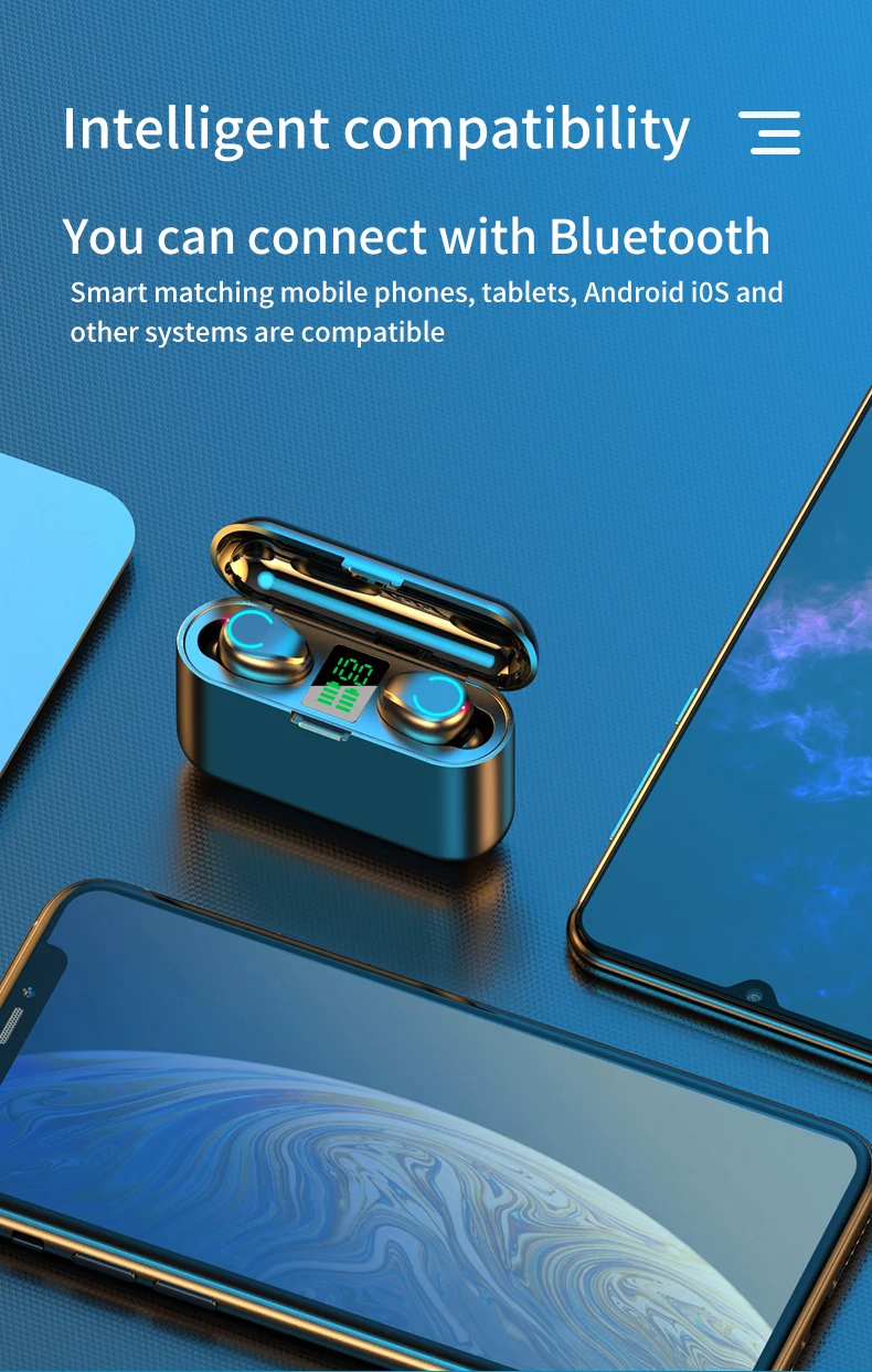 Bluetooth-наушники TWS с сенсорным экраном F9-13B, Спортивная Беспроводная стерео гарнитура с шумоподавлением 9D, объемным звуком, Bluetooth-наушники