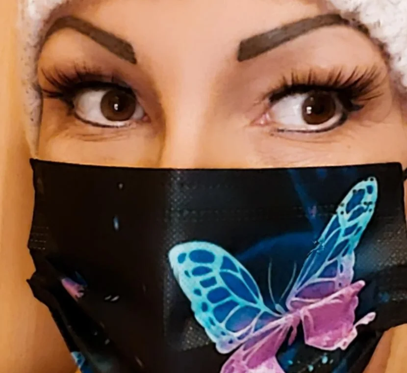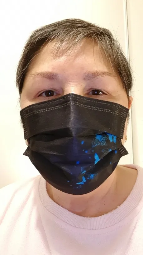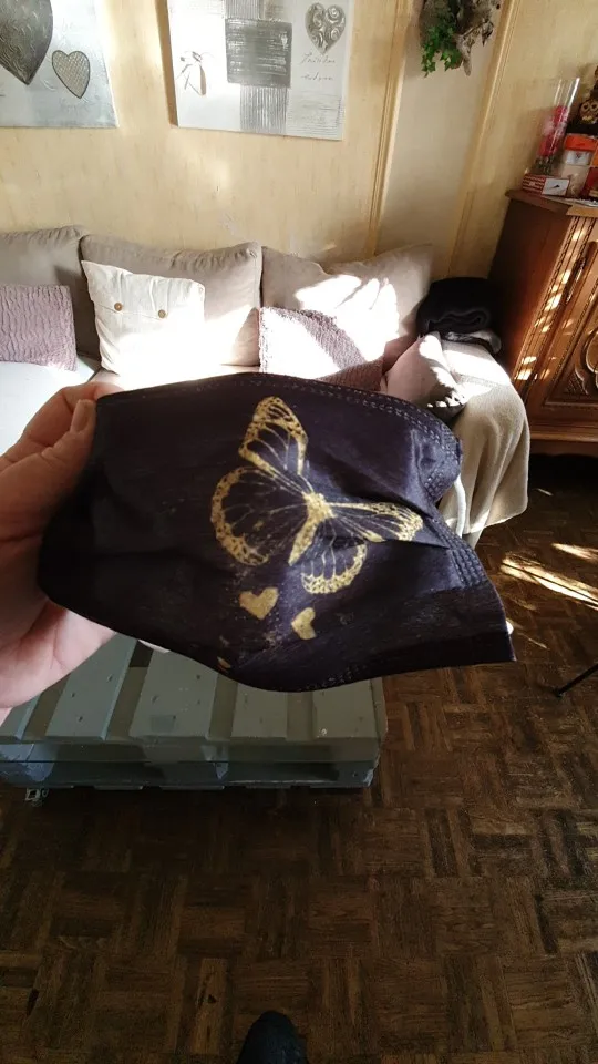 Маска для лица из очень хорошего материала, я очень доволен, милая расцветка, великолепные бабочки, прекрасные сильные резинки