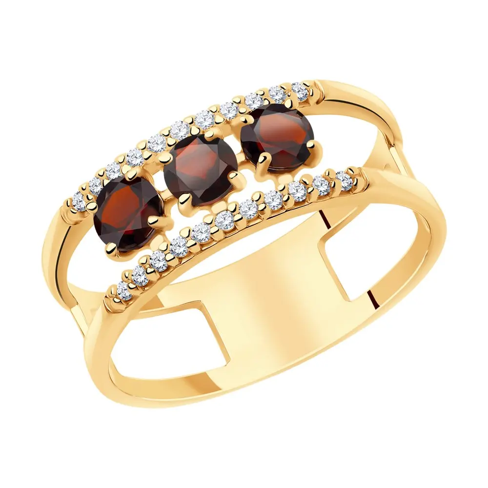 Кольцо SOKOLOV из золочёного серебра с гранатами и фианитами, Серебро, 925, Женское, Оригинальная продукция