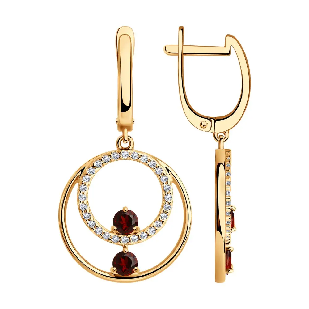 Серьги SOKOLOV из золочёного серебра с гранатами и фианитами, Серебро, 925, Женские, Серьги 2022 тренд, Оригинальная продукция