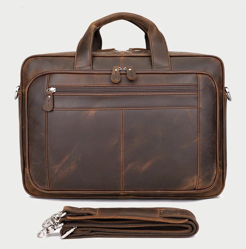 Портфель Luufan мужской из натуральной кожи, сумка-тоут из кожи Крейзи Хорс для ноутбука 17 дюймов, саквояж в деловом стиле, саквояж с плечевым ремнем из воловьей кожи