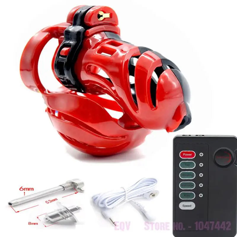 Целомудренная клетка пениса замок Электро Секс мошонки клетка пениса звуковой штекер вибрирующие кольца для члена Мужской Пояс верности Секс-игрушки для Для мужчин.
