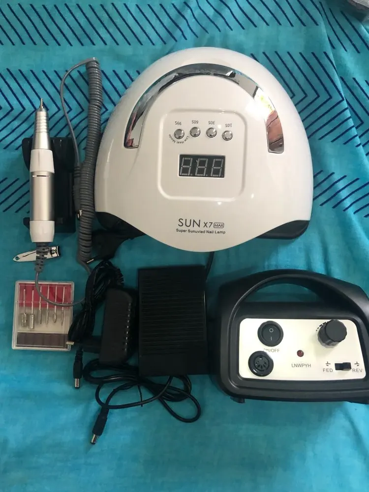 Товаром очень довольна. Все соответствует описанию. Пришло очень быстро в Саратовскую область. Заказала 10 марта, а 15 марта уже получила. В деле уже испробовала. Лампа сушит хорошо. Фрезы на маникюрном аппарате не хорошие, но их можно купить отдельно.