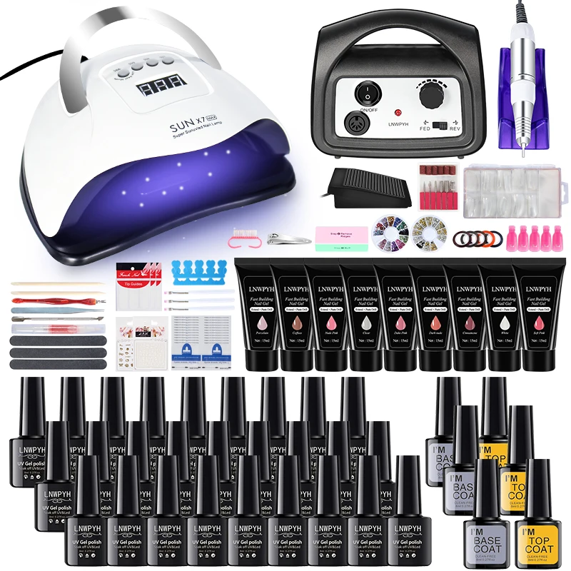 Набор для ногтей, лампа для сушки ногтей, 35000 об.мин., машинка для аппаратного маникюра, быстрое наращивание ногтей, набор для замачивания гель-лака