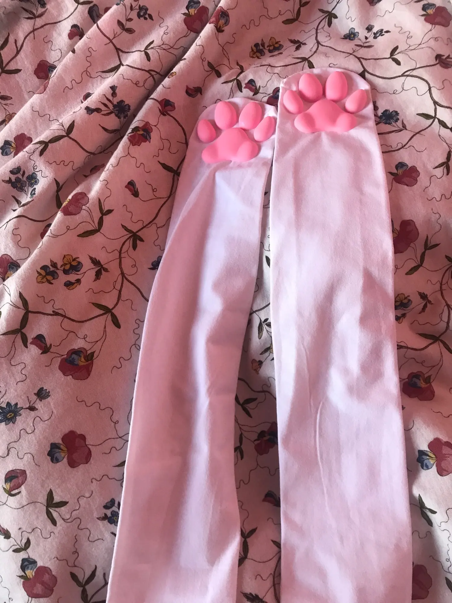 класные чулочки, правда по длине не сильно порадовали, подушечки лап очень красивые но твёрдые, легко липнут, износ может и долгий, но не получится в них долго ходить)