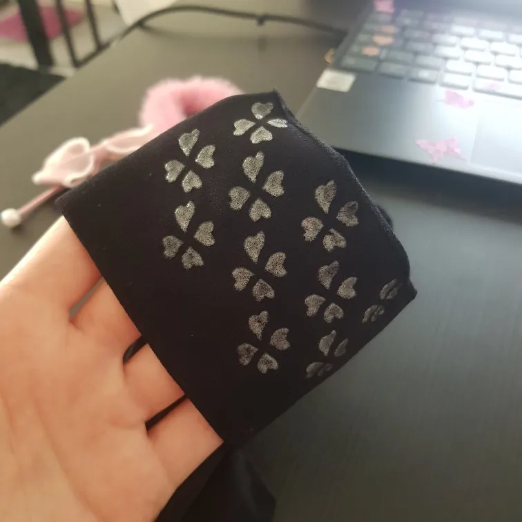 Item exactly as described, the pink plastics are glued not woven. Don't know if they will eventually fall off. The interior has plastics to stick to your skin, so that they would not slide down. Also received cute hair ties as gifts. :3