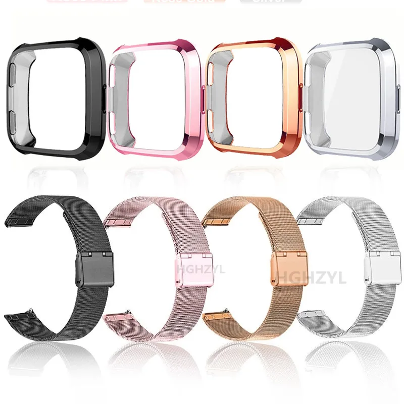 Миланский ремешок для fitbit versa 2 ремешок металлический браслет с Чехол fitbit versa lite 1 Защитный Браслет для часов аксессуары