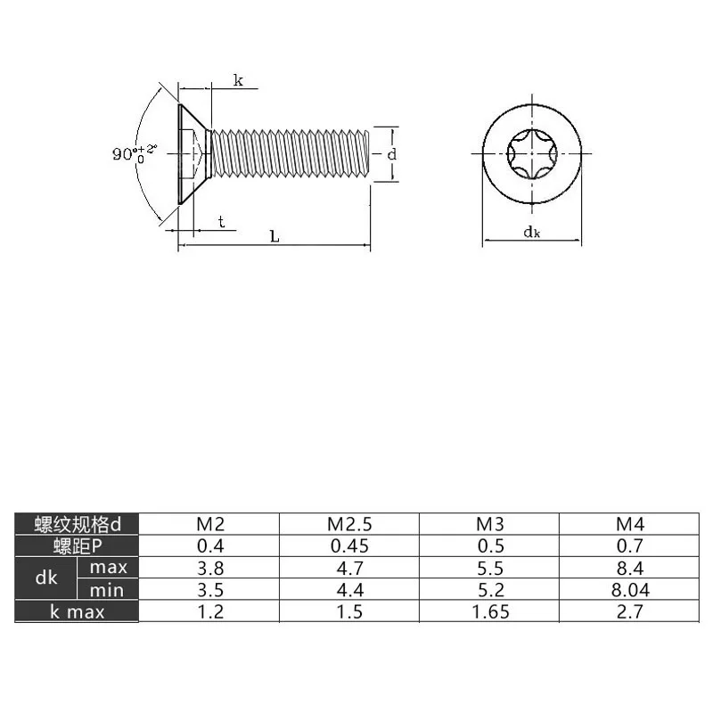 M4 x 0,7 4 мм плоская головка Torx винты безопасности машины-A2 304 нержавеющая сталь