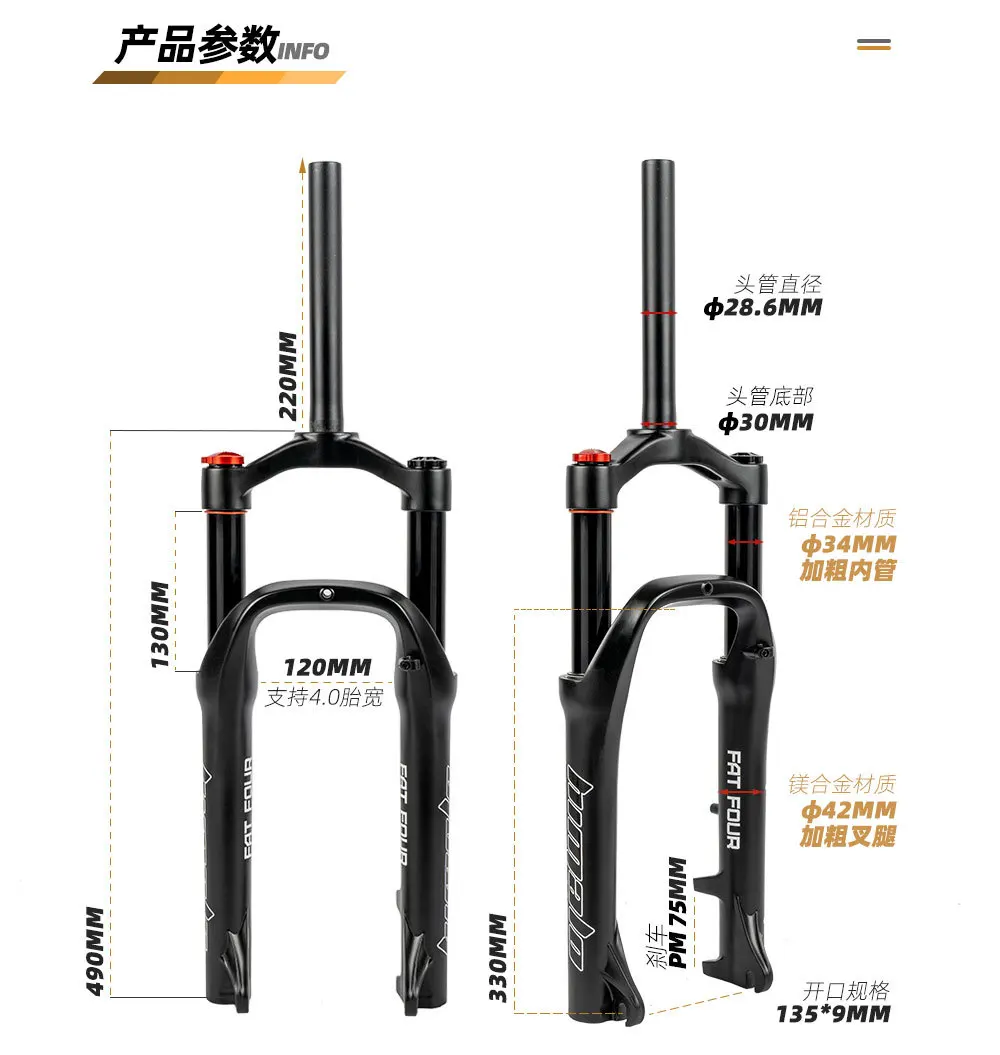 20 дюймов MTB Горный Руль для шоссейного велосипеда пневматическая подвеска вилка амортизатор ось 135 мм для фэт пляжный велосипед 4,0 широкие шины