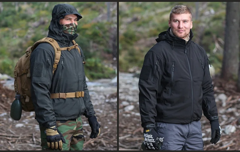 Зимние тактические куртки из мягкой кожи акулы, Мужская водонепрони...