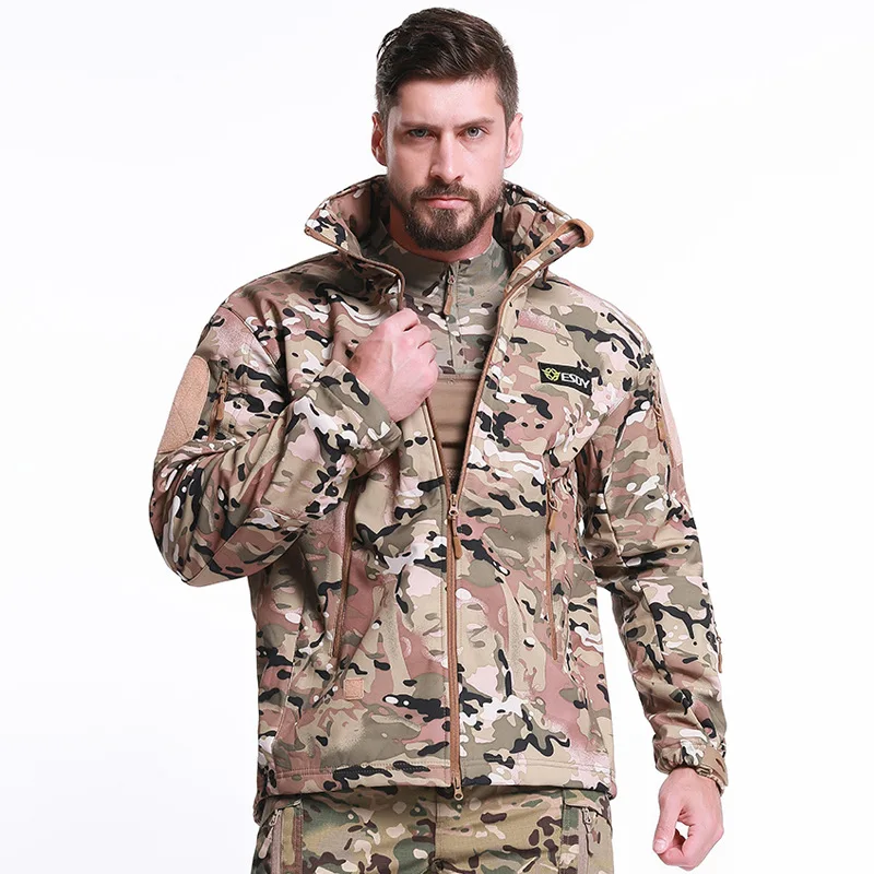 Зимняя флисовая Военная униформа, Мужская тактическая куртка с мягкой оболочкой, армейская уличная куртка с капюшоном для охоты, Мужская ветровка Мультикам для страйкбола