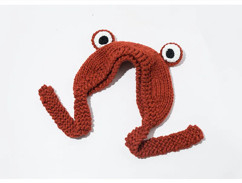 Зимняя шапка, 2021, женская шапка, вязаная шапочка с лягушкой, кост...