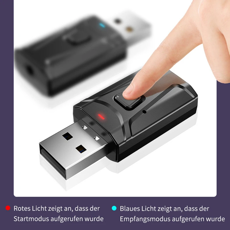 Особенности: Длительное нажатие для переключения режима 1. С микрофоном: свободные руки во время работы, уборки и вождения 2. Режим передатчика: Беспроводная трансляция звука с телевизора без Bluetooth, домашней стереосистемы или CD-плеера на наушники или динамики Bluetooth 3. Режим приемника: Беспроводная трансляция звука с телефона, планшета или компьютера с помощью Bluetooth на проводную стереосистему, динамики или наушники. 4. В комплекте Нет встроенной батареи, она питается от usb-интерфейса 5 в постоянного тока: A. Вставьте питание от usb, красный индикатор горит в режиме передачи, красный светильник мигает при сопряжении, а красный светильник катор горит всегда после успешного сопряжения. B. Вставьте usb для включения, режим приема-синий светильник, синий светильник мигает при сопряжении, синий светильник всегда горит после успешного сопряжения. 5. Широкая совместимость: с прилагаемым кабелем 3,5 мм этот адаптер передатчика приемника можно широко использовать на компьютере, ноутбуке, домашней стереосистеме, наушниках, смартфоне, MP3-плеере, CD-плеере и т. д.