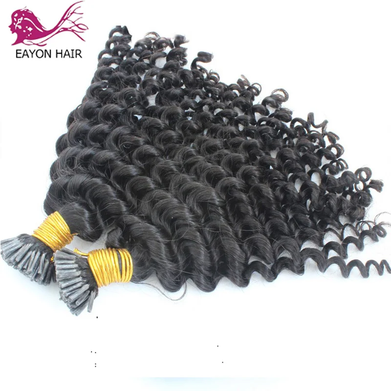 I Tip Наращивание человеческих волос афро кудрявые вьющиеся Предвар...