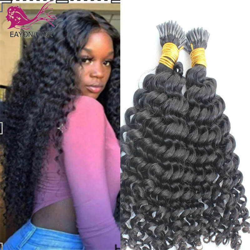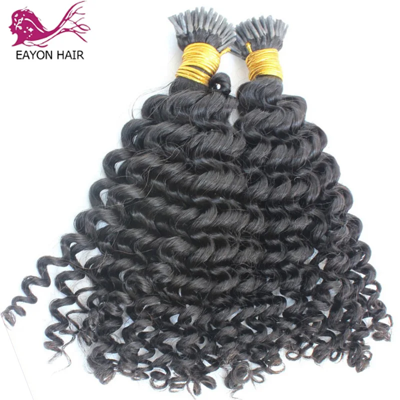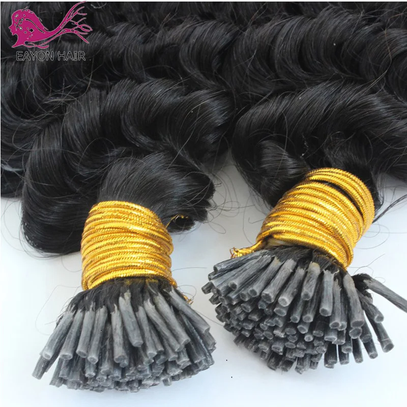 Бразильские волосы для наращивания EAYON Remy I Tip, вьющиеся керат...