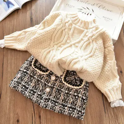 Детская осенне-зимняя юбка в твидовую клетку для маленьких девочек,...