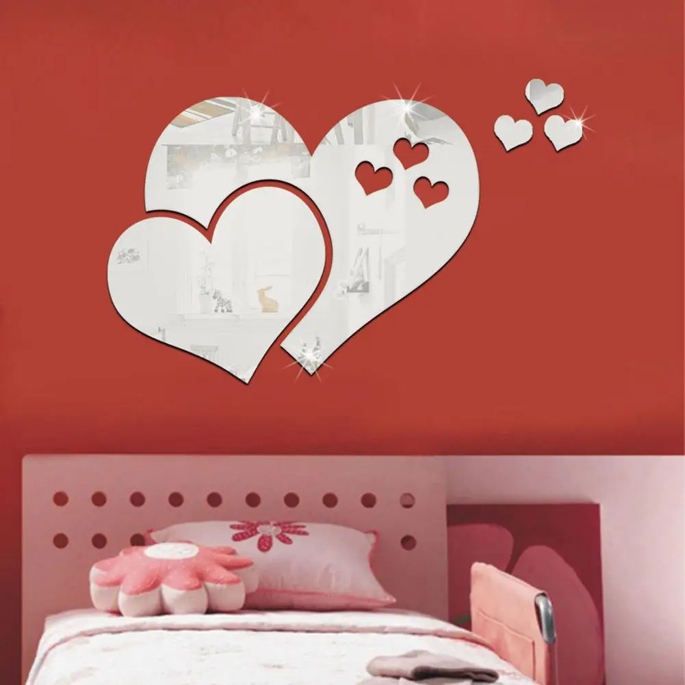 Зеркальная поверхность Настенная Наклейка в форме сердца DIY Искусство роспись домашнее украшение настенное украшение водонепроницаемый