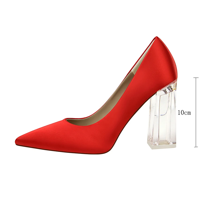 Женские атласные туфли-лодочки, розовые, желтые, на квадратном каблуке 10 см, прозрачные туфли, большой размер 43, 2021