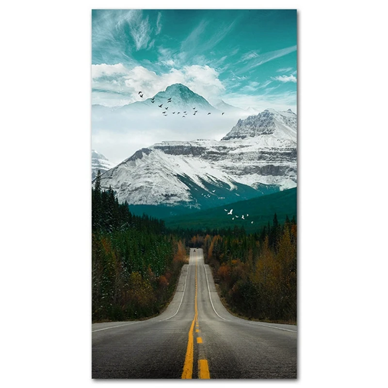 Asuka, Лесной холст, плакат для печати, скандинавский ландшафт, Снежная гора, дорога, офис, настенное крепление, картина, художественное украшение