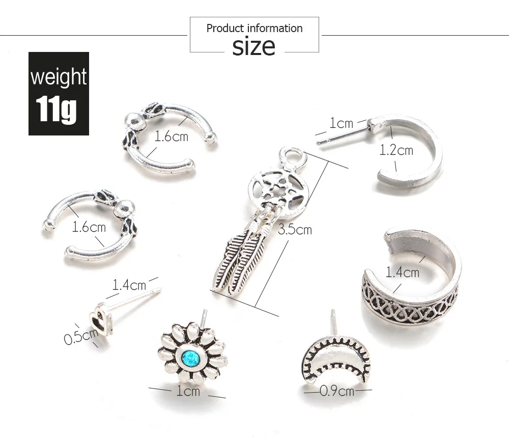Серьги-каффы женские Modyle, 8 шт.компл., богемные, с Луной, солнце...