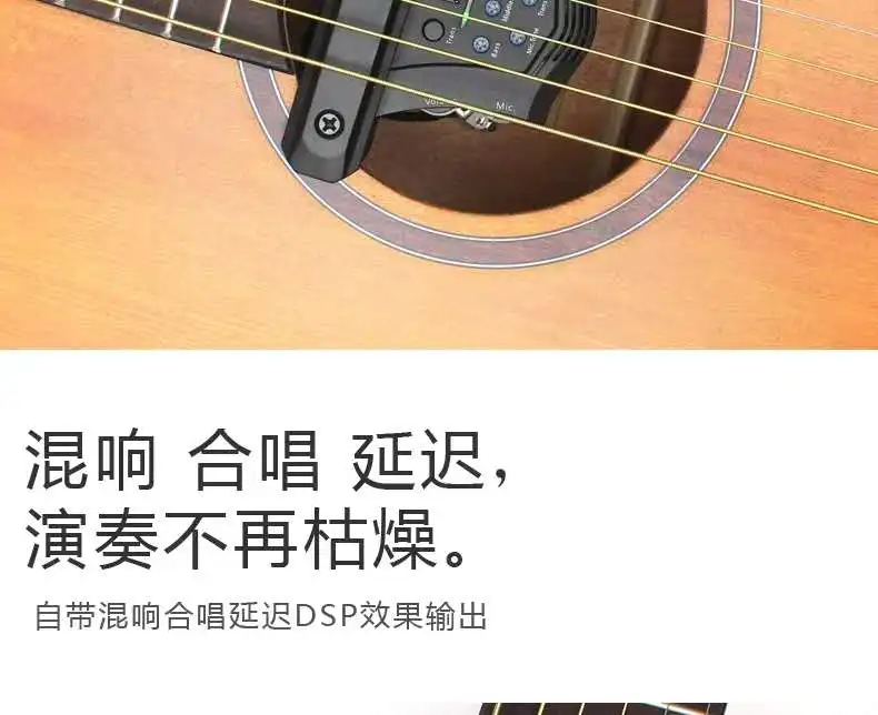 Звукосниматель используется для 39-42 дюймовой акустической гитары. Магнитный звуковое отверстие пикап встроенный реверберации хора задержка эффект Качество и долговечность, простота установки, избегайте открытия.