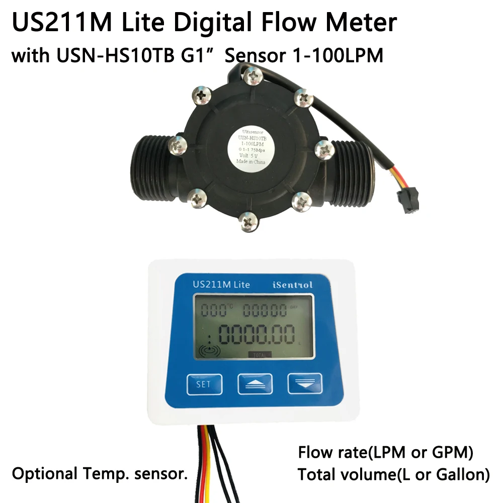 Цифровой расходомер US211M Lite, устройство для чтения потока G1 '', USN-HS10TB 1-100 лмин, 5 В, совместим с датчиком потока воды с эффектом холла, Dijiang