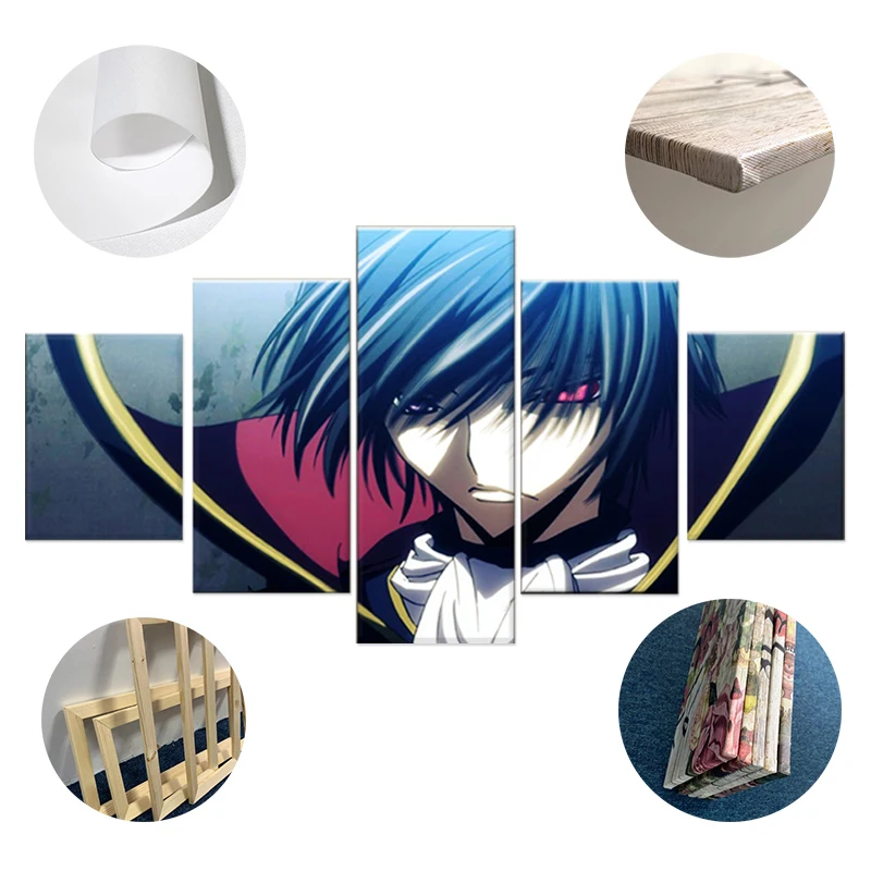 Современный плакат на холсте с Hd-печатью, украшение для дома, 5 шт., картина Geass, настенное искусство, аниме картины для комнаты мальчика, модульная рамка
