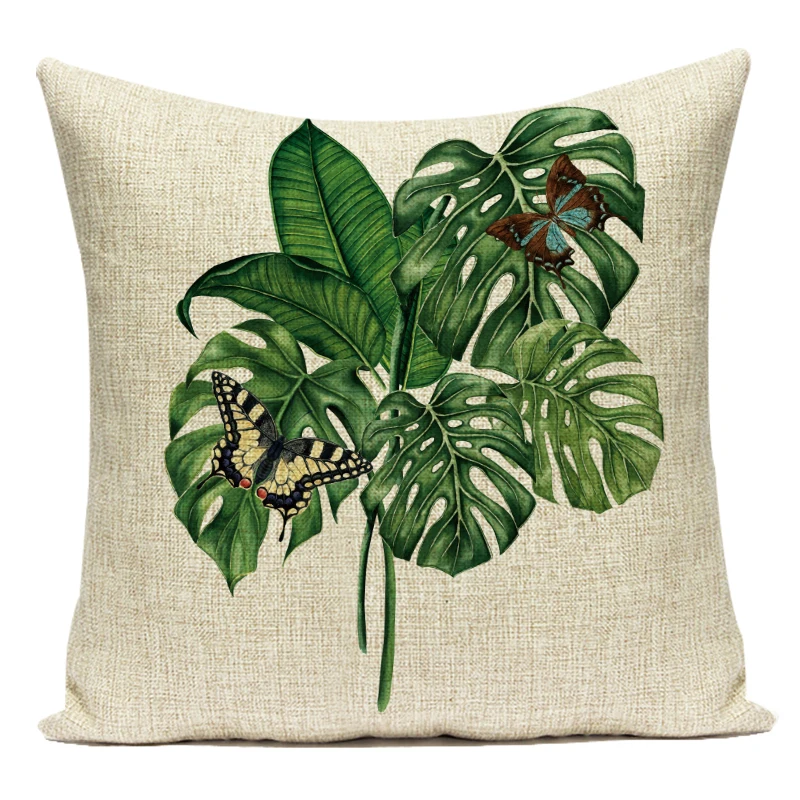 Декоративные наволочки из полиэстера, с изображением тропических зеленых растений, пальмовых листьев, монстеры, фермерского дома, наволочка для подушки