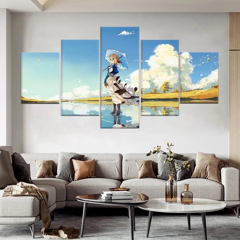 Плакат, Современное украшение для дома, 5 предметов, фиолетовый, эверсад, холст, печать, Настенная картина, искусственная живопись, аниме, картина для гостиной